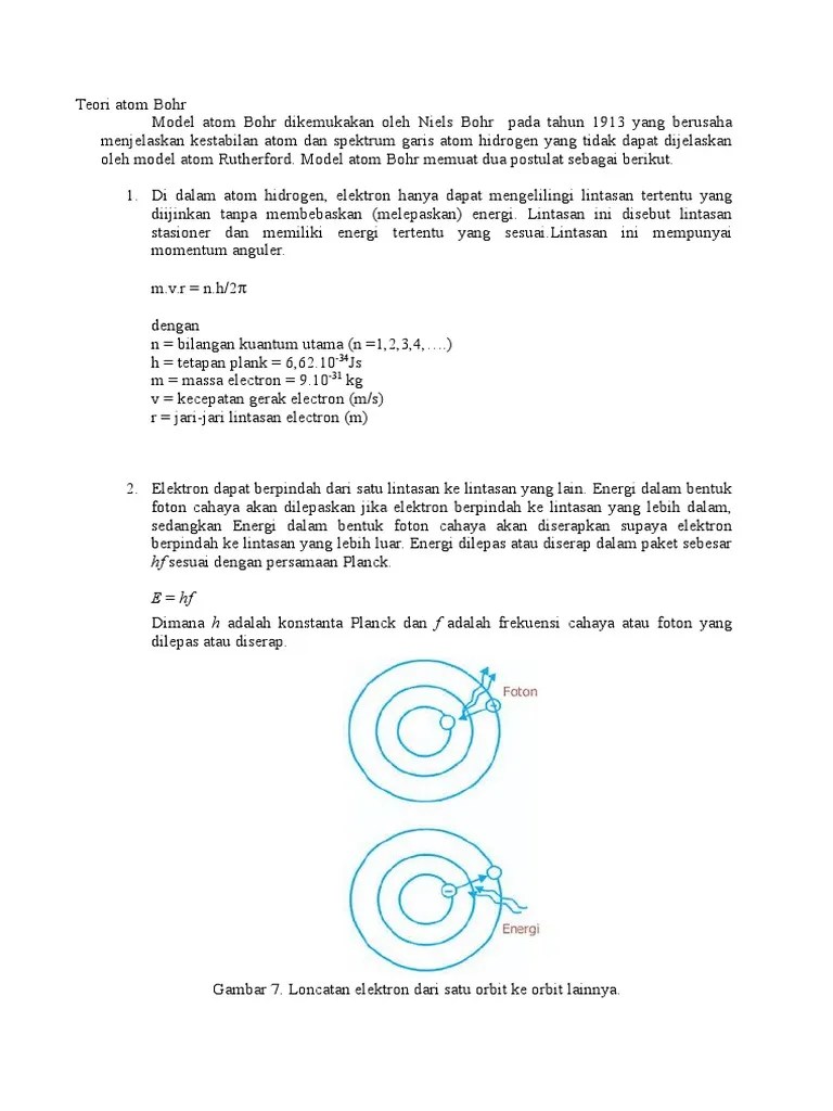 Hipotesa dalton digambarkan dengan model atom sebagai bola pejal seperti pada tolak peluru. Orbit dikenal juga sebagai kulit atom. Elektron memancarkan energi ketika bergerak, sehingga energi atom menjadi tidak stabil. May 27, 2018 · pada tahun 1913, berdasarkan analisis spektrum atom dan teori kuantum yang dikemukakan oleh max plank, niels bohr mengajukan model atom hidrogen, yaitu atom yang hanya mengandung satu elektron. • tidak bisa menjelaskan spektrum garis pada atom hidrogen (h).Elektron memancarkan energi ketika bergerak, sehingga energi atom menjadi tidak stabil.